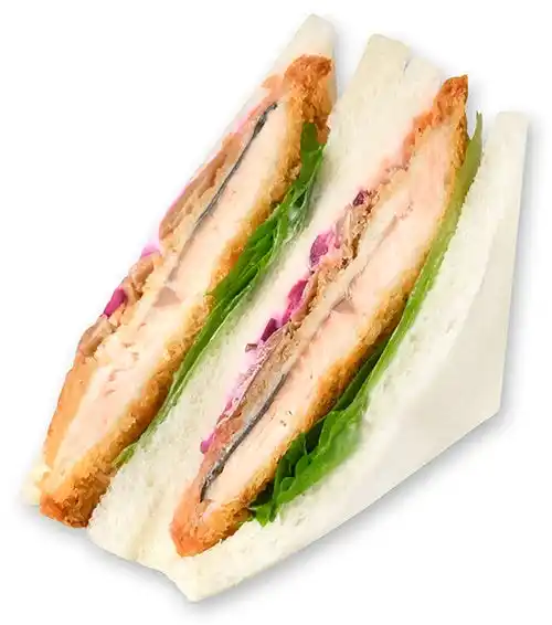 タルタルソースで仕上げたぷりぷり食感のエビカツサンドと人気のたまごサラダサンドを組み合わせました。2つの味のサンドイッチが楽しめるのも人気です。 |