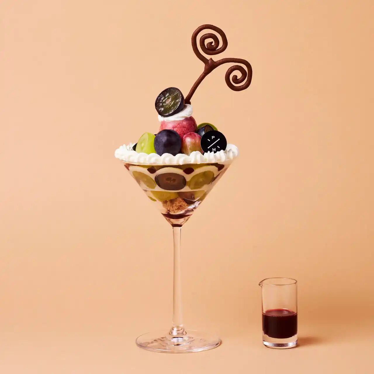 旬のぶどうを贅沢に使用したパフェです。数種類のぶどうと、青森産スチューベンのソルベ、ホワイトチョコレートアイスに、爽やかな酸味のカシス コンフィチュールの風味が調和し、ホワイトチョコレートをコーティングしたフィアンティーヌが歯ごたえを添えています。別添えのポートワインとぶどうのソース(ノンアルコール)を掛けて、フレッシュな季節限定の味わいをお楽しみください。 |