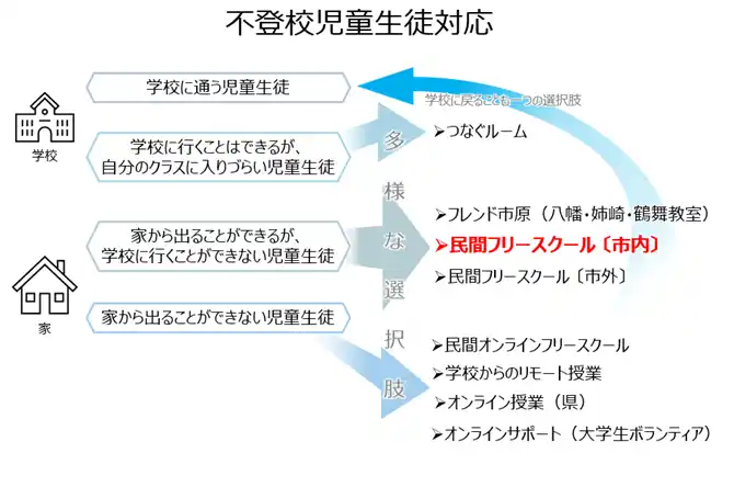 | 市内フリースクールの運営や開設に係る経費を補助します。 | ||||||