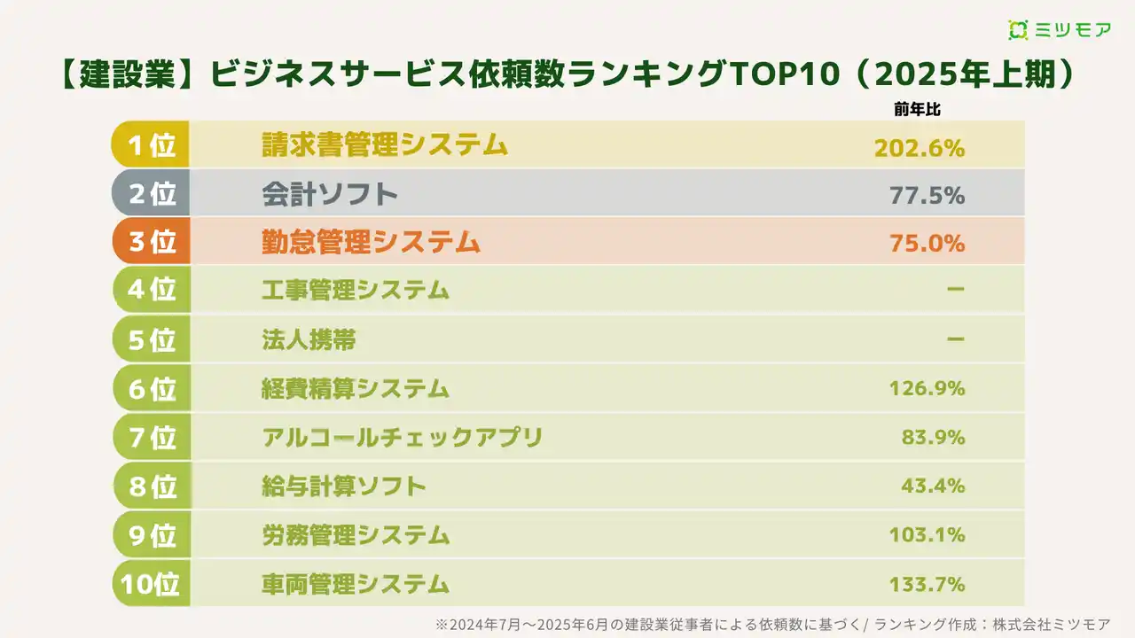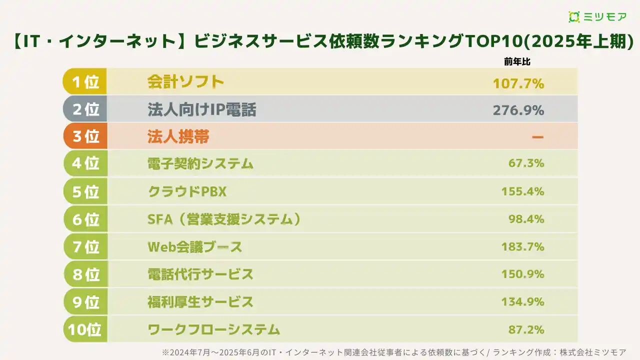 【2025年上期】ビジネスサービス依頼数ランキングTOP10 |