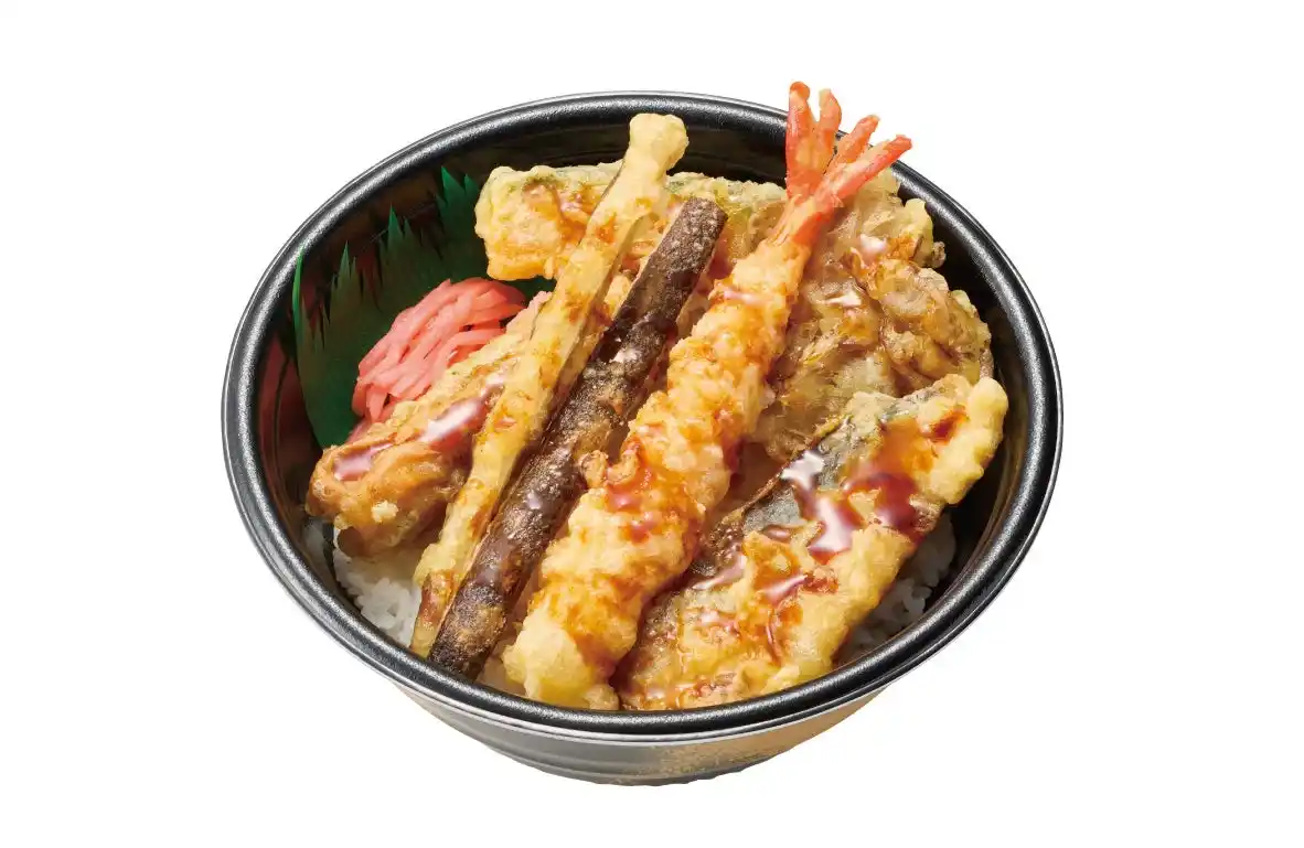 | 黄身の濃厚なコクと、白身の弾力が楽しめる「たまご天」、やさしい甘みが広がる「かぼちゃ天」、旨みが溢れる「まいたけ天」、風味豊かな「ごぼう天」という秋の味覚たち。さらに、定番の「えび天」「ちくわ磯辺」「さわら天※」を一緒に楽しむことができる天丼です。昆布やかつお節、しいたけの旨味の濃厚なコクが特長の天丼のたれをかけて、天ぷらと白ごはんの絶妙なハーモニーをお楽しみください。 | |||||||||||