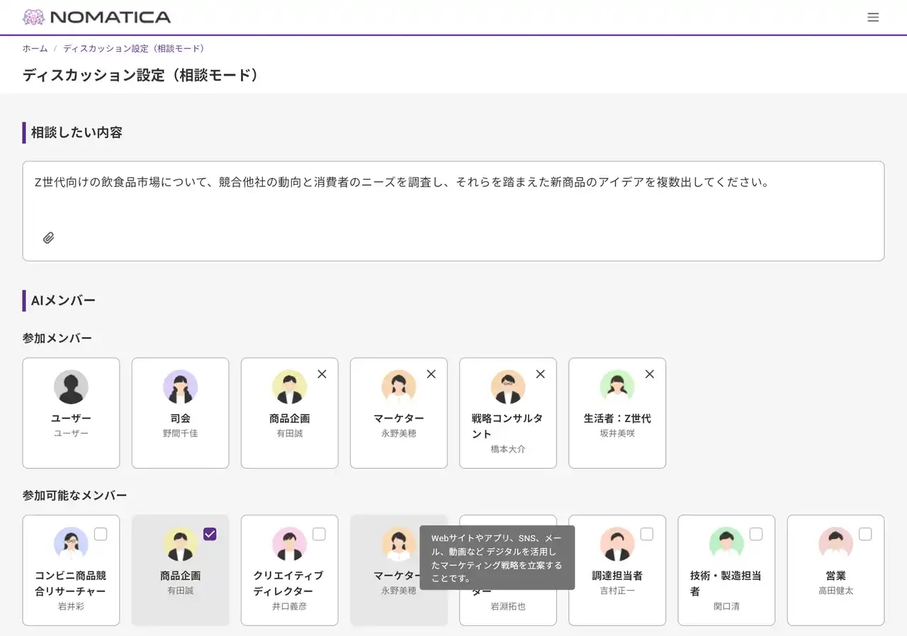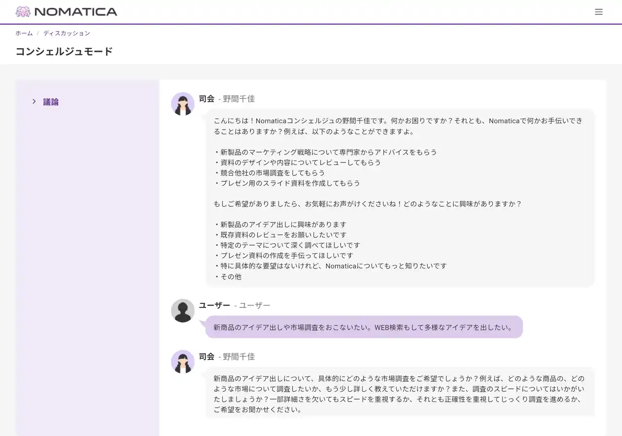 Nomaticaは2024年のサービス提供開始以来、30超の専門家エージェントによる多角的な発想力と、高度な企画生成機能で、企業の新規事業、商品開発、マーケティング等の専門性の高い企画業務を数多く支援してきました。実務現場での活用が進む中、ユーザーからは次のような要望が寄せられていました。 |