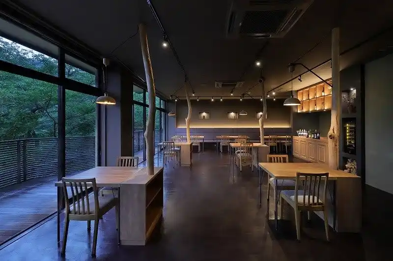 | 山形の風土を、森の音では現代的にアレンジを加え随所に表現しています。レストラン「森の音dining」は、山形の自然文化や地域との共生を目指したレストランとして2024年2月にリニューアル。提供するお料理・お飲み物からインテリアデザインまで地元素材にこだわり、より山形の自然を五感で感じていただける空間に仕上げています。秋になると窓からはほんのり茜色に色づいた森の紅葉もご覧いただけます。 | |||||||||