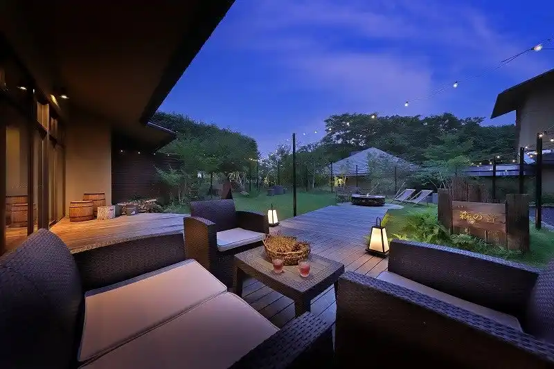 | 綺麗に手入れされた森の音ガーデンで、秋風を浴びながらリラックスタイム。ファイヤーピットにて燻製体験をしたり、ヨガをしたり。様々な楽しみ方でお過ごしいただけます。テラス席では、焚火に癒されながら、デザートやドリンクをお召し上がりいただけます。 | |||||||||