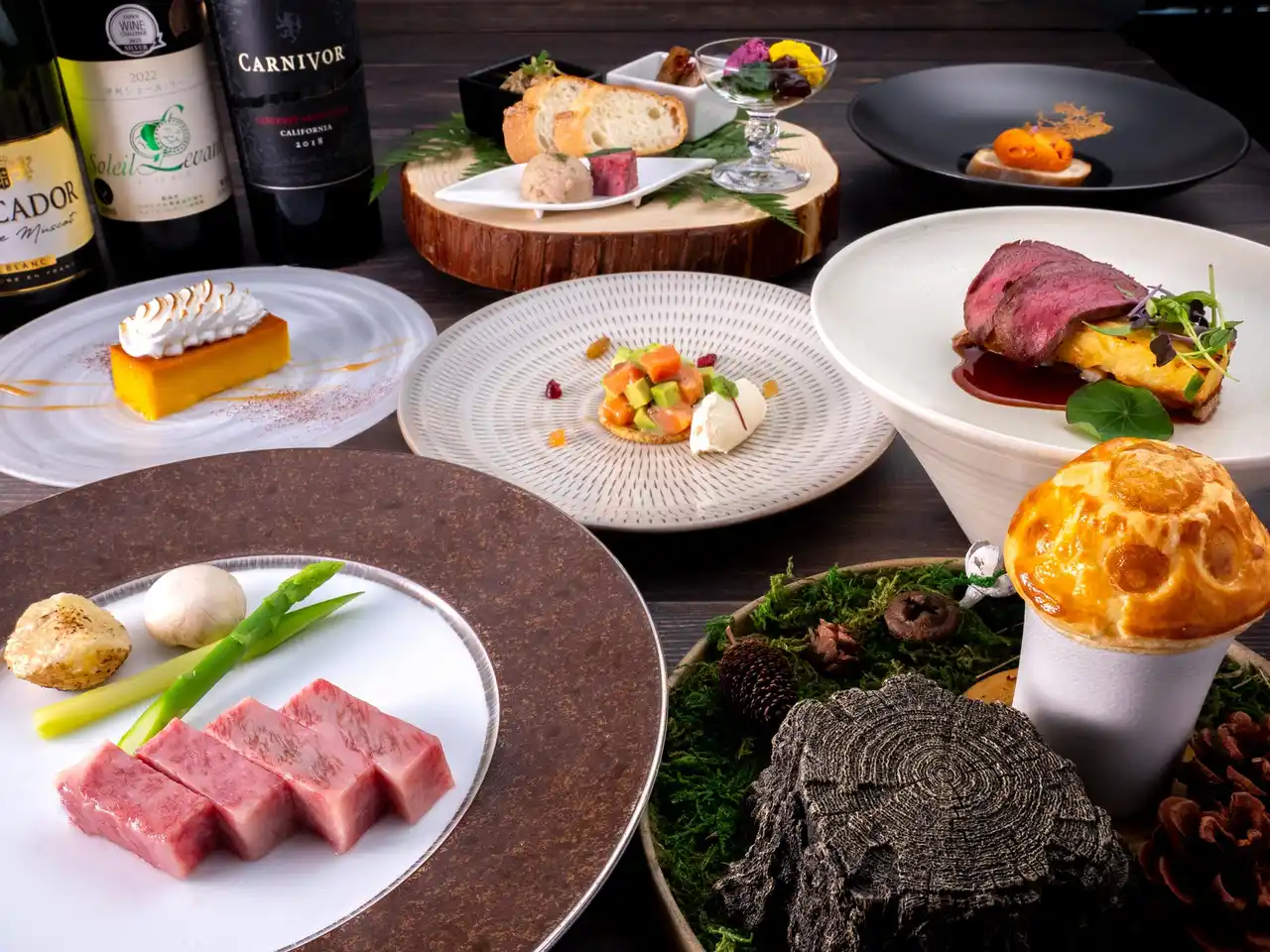 | 今年のディナーコースは森で採れた、リスの大好きな木の実はもちろん、秋が旬の栗やきのこなどを中心に、山の恵みを贅沢に使用したお料理をご提供いたします。オプションでかみのやま産ワインもご用意するなど、サスティナブルディナーをお楽しみいただけます。 | |||||||||