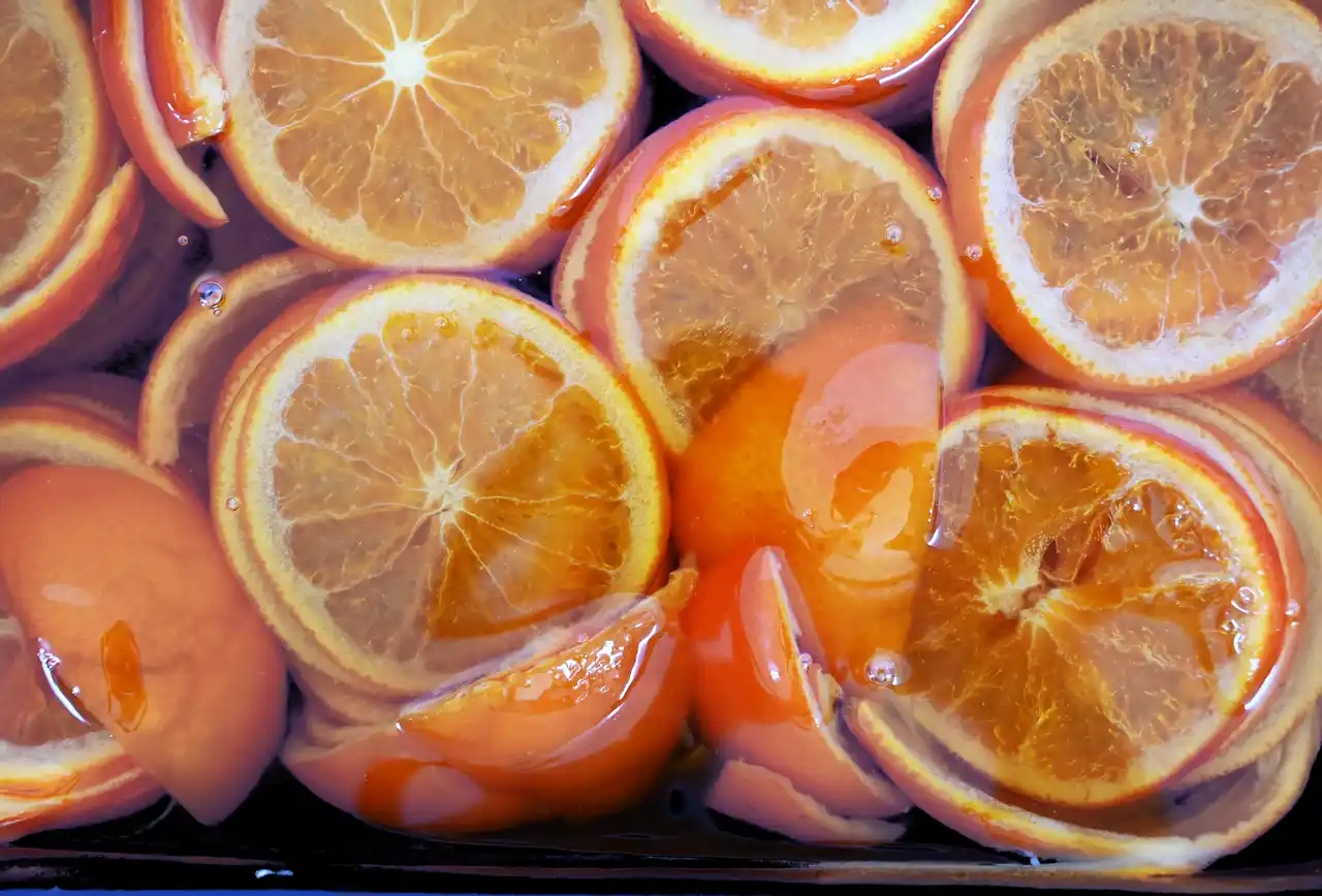 オレンジのジューシーさの秘密は、 独自の蜜漬け製法 |