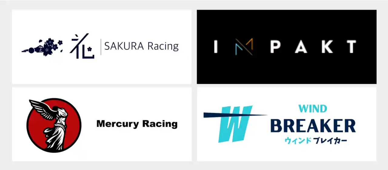 上段右より:花-SAKURA-Racing, Team IMPAKT 下段右より;Mercury Racing, Wind Breaker |