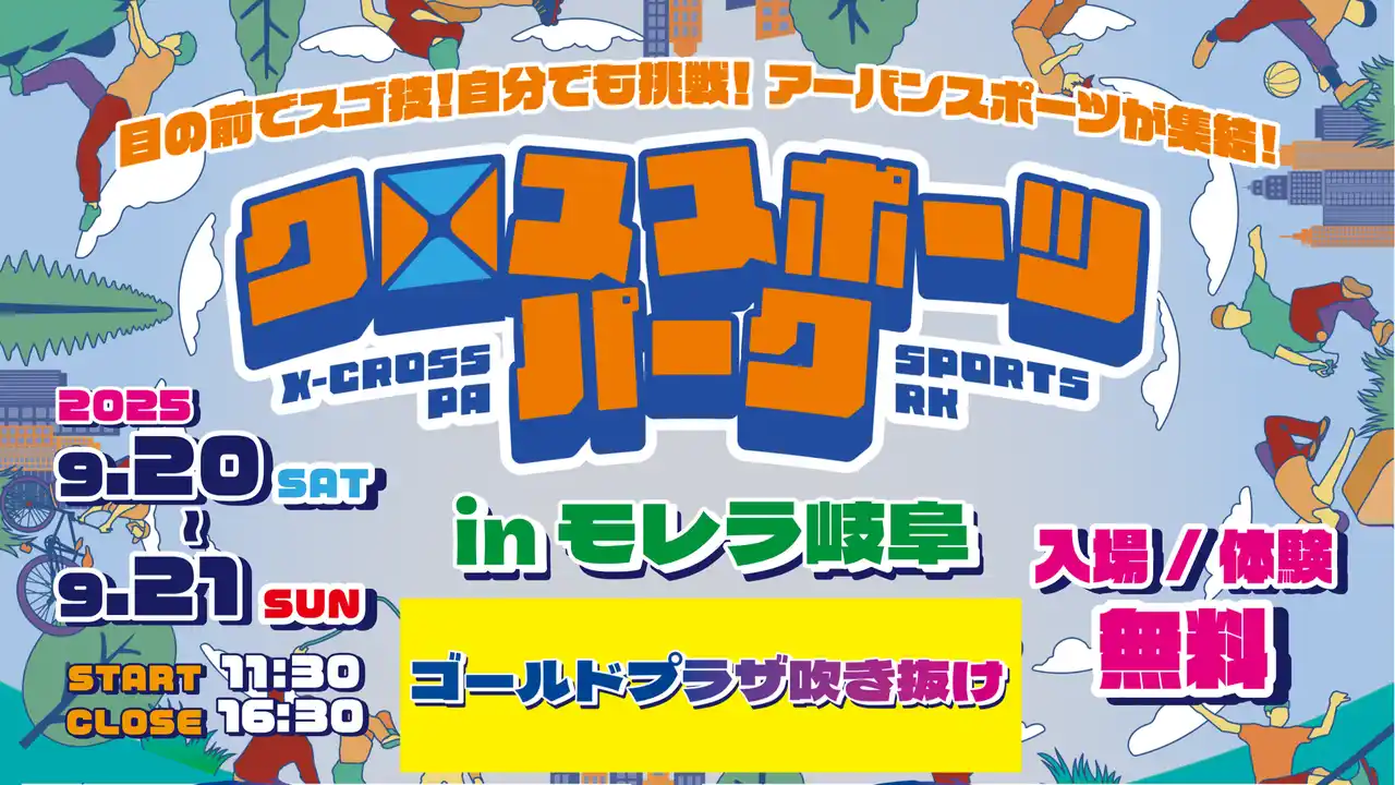 株式会社MoveX(本社:東京都品川区)は、プロの圧巻パフォーマンスと多彩なスポーツ体験を無料で楽しめるイベント「クロススポーツパーク in モレラ岐阜」を、2025年9月20日(土)・21日(日)の2日間、モレラ岐阜(岐阜県本巣市)にて開催します。 |