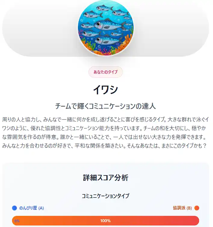 診断結果はXやLINEで共有でき、情報を広く拡散することが可能です。 また、質問と回答はCSVファイルで一括インポートに対応しているため、複数の診断を効率的に作成できます。 |