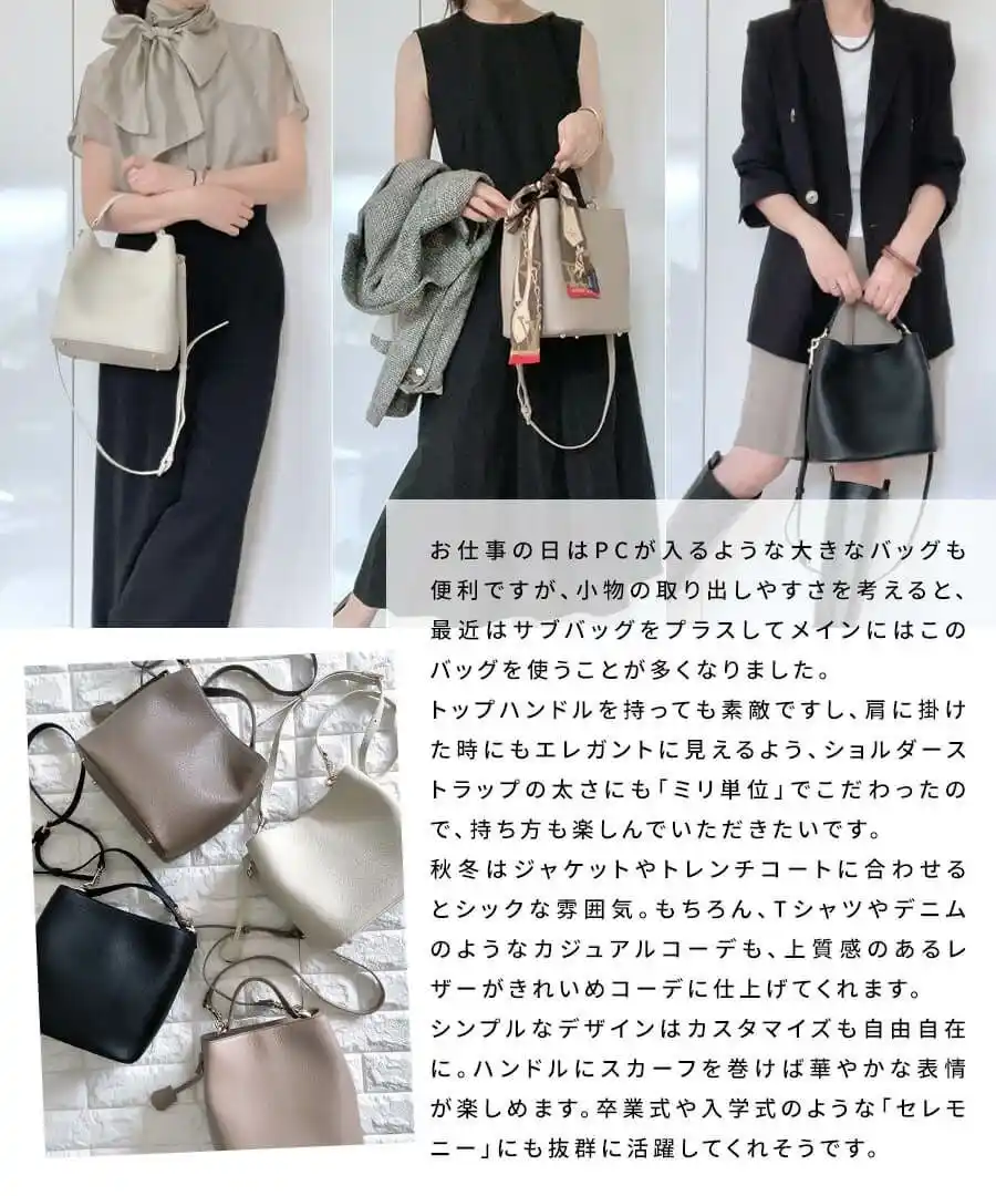 大容量でも品があって女性らしい、高見えだけど手の届くコストパフォーマンスにこだわり、大人女性の日常に寄り添うバッグを提案。現在、国内外のECサイト8店舗を展開し、2022年11月にはニューヨーク・ブルックリンでの展示・販売も実現しています。 |