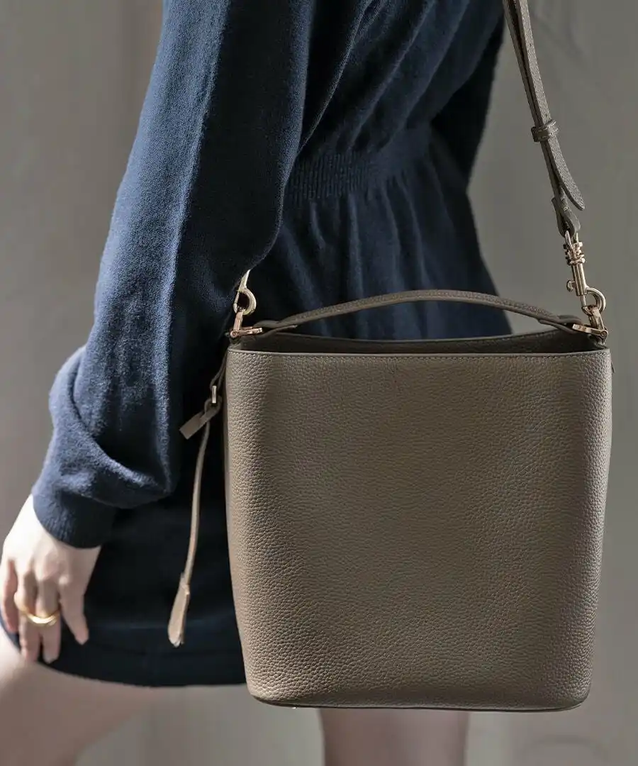 1年以上の開発期間を経て、「とにかくシンプル」をコンセプトに無駄なものをとことん省いた、洗練されたバケットバッグが完成しました。 |