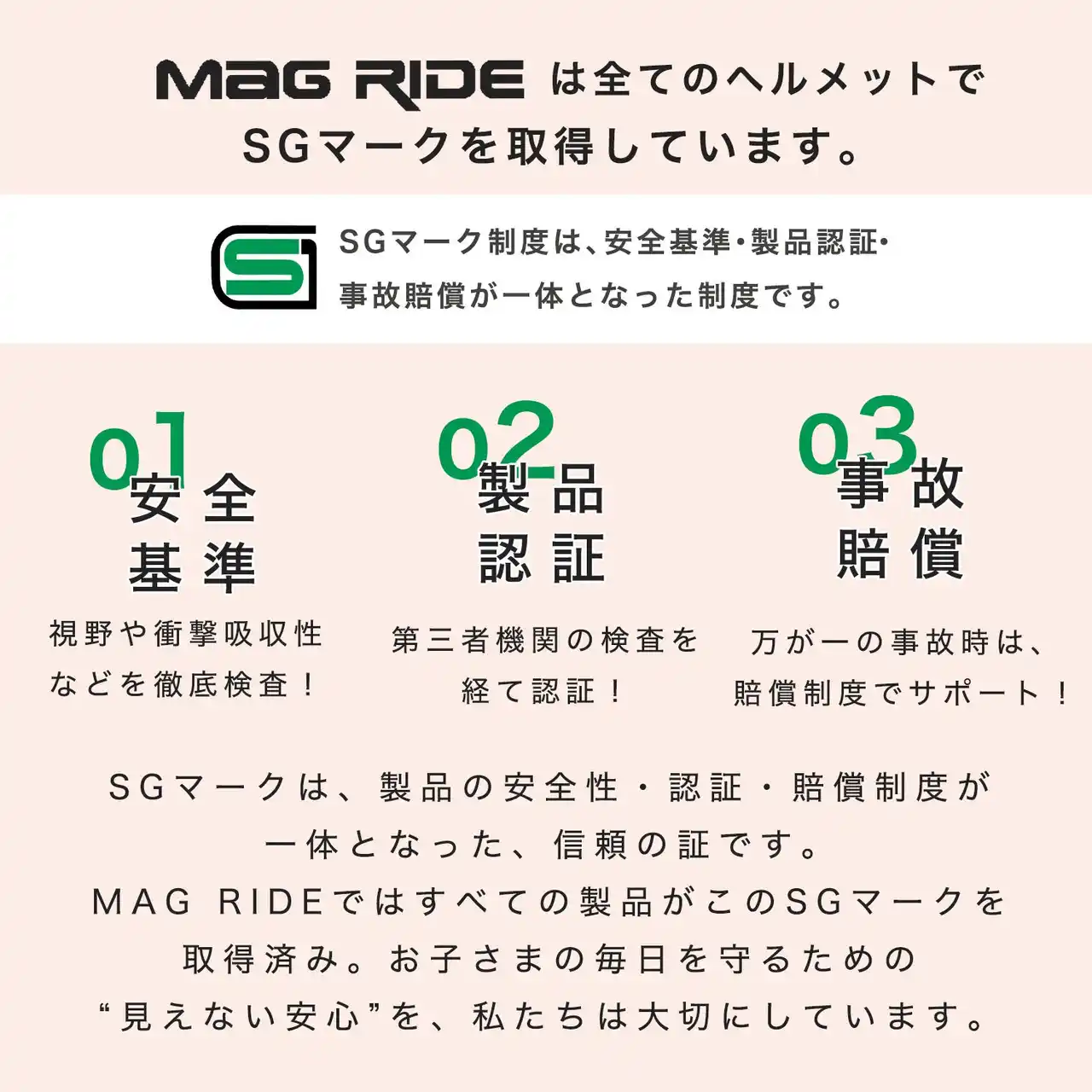 ・自転車用のSGマーク取得済み。デザイン性や多彩な用途だけでなく、しっかりした安全性能を備えています。 |