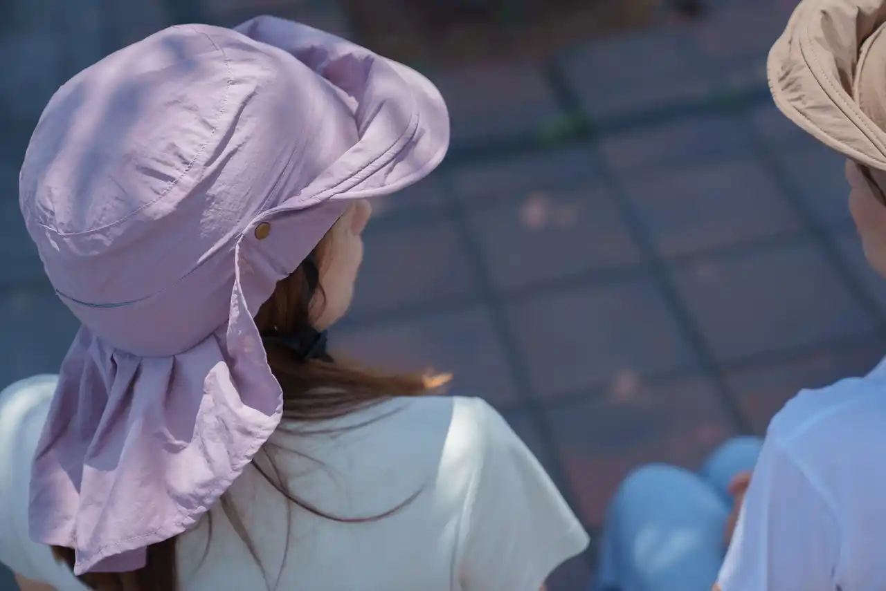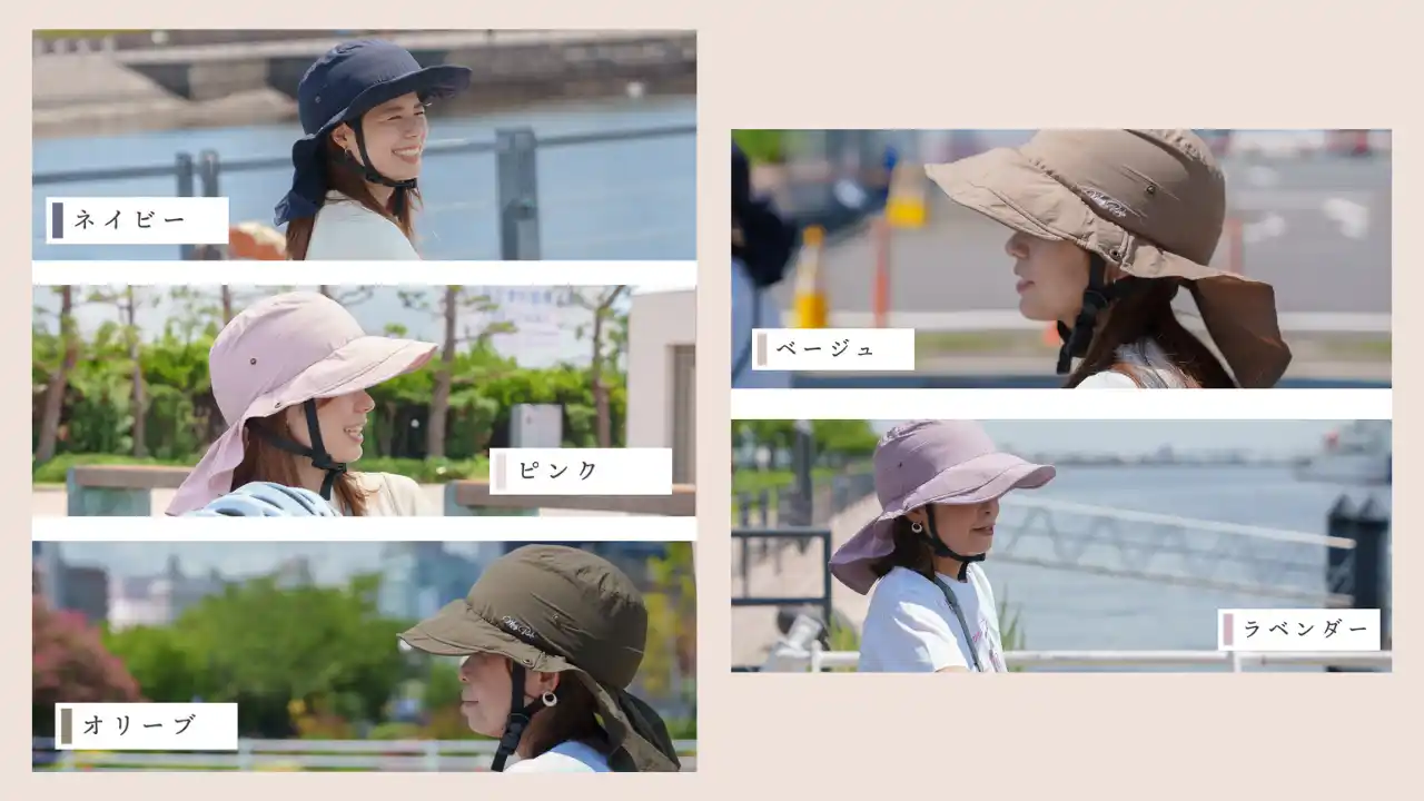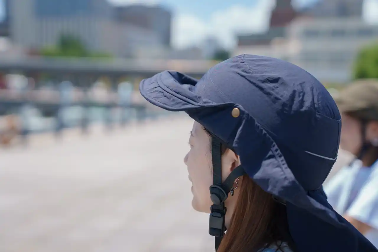 ・子どもの送り迎えなどでノーメイクでも気にせず外出できるように、長めのツバと首まで覆うネックシェードをプラスし、紫外線から美肌を守る、新しい毎日の習慣となることを想定。 |