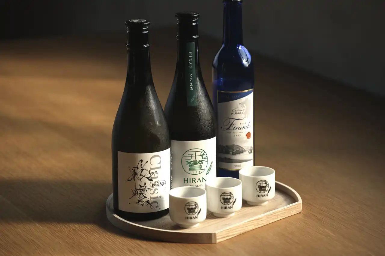 | 夕食時には、長崎・平戸の老舗酒蔵「森酒造場」が手がける銘酒「飛鸞(ひらん)」の3種を飲み比べできる特別セットをご用意。 | |||||||||