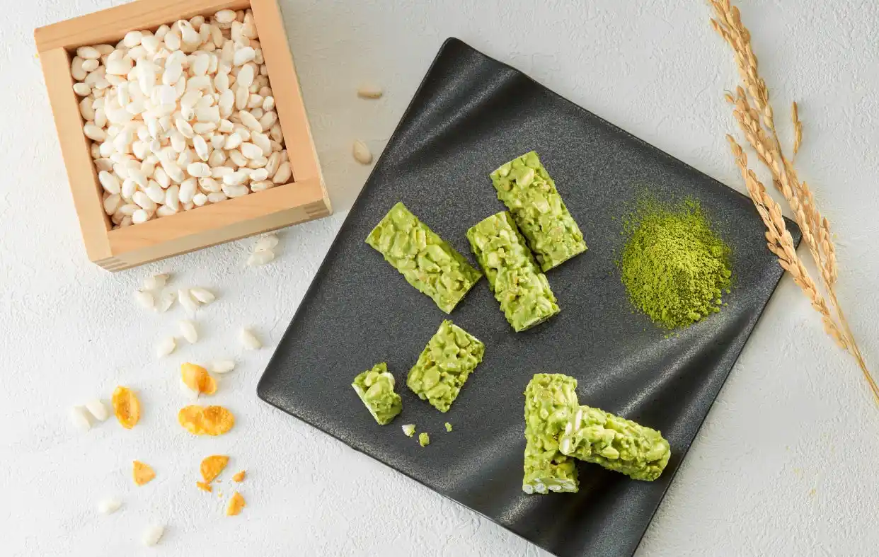 京都府産ブランド米「京式部」を加工したサクッと軽やかなお米パフに、JA京都やましろが手掛ける宇治抹茶「抹濃(R)」を使用したチョコレートを着せた逸品です。 |