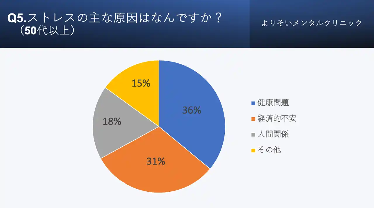 今回アンケートを実施した対象者の中から50代以上の方に対して日常の主なストレスについて調査しました。 |