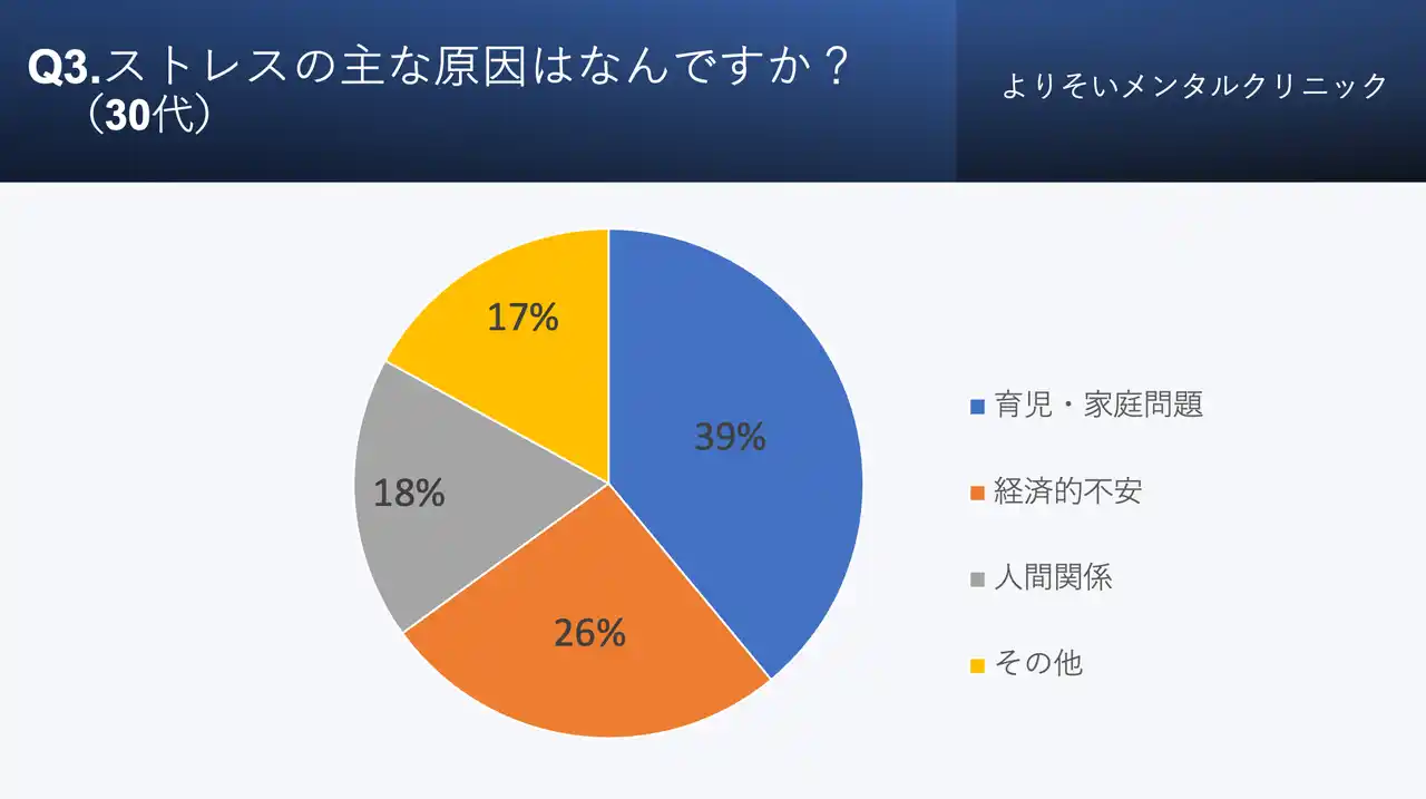 今回は、日常的なストレスに関する実態を調査しました。ストレスの感じ方は年代によっても要因が異なります。 |
