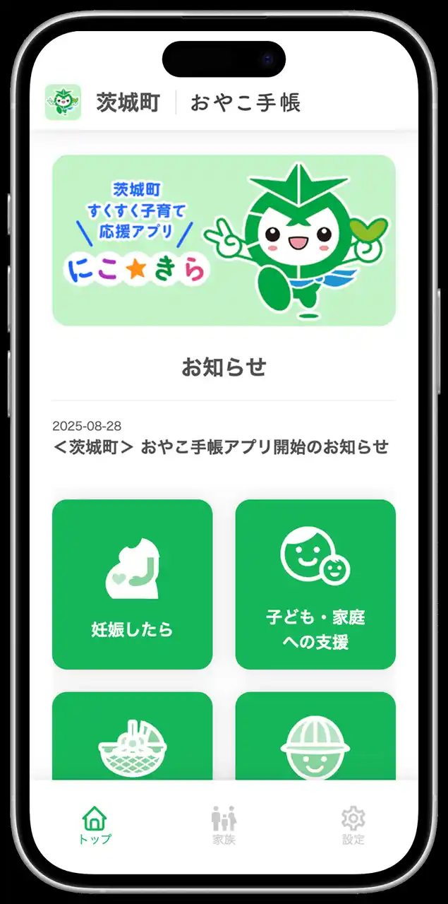 この度、妊娠期から子育て期にわたる切れ目ない支援の一環として、「茨城町すくすく子育て応援アプリ にこ☆きら」の運用を開始しました。お子様の成長記録や予防接種のスケジュール管理、子育て支援情報の配信など、お子様の健やかな成長に役立つさまざまな機能がご利用いただけます。 |
