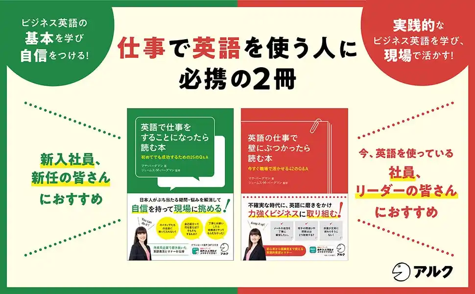 ※本書は、好評発売中の『英語で仕事をすることになったら読む本』(マヤ・バーダマン著/アルク刊)の続編としてもお使いいただけます。 |