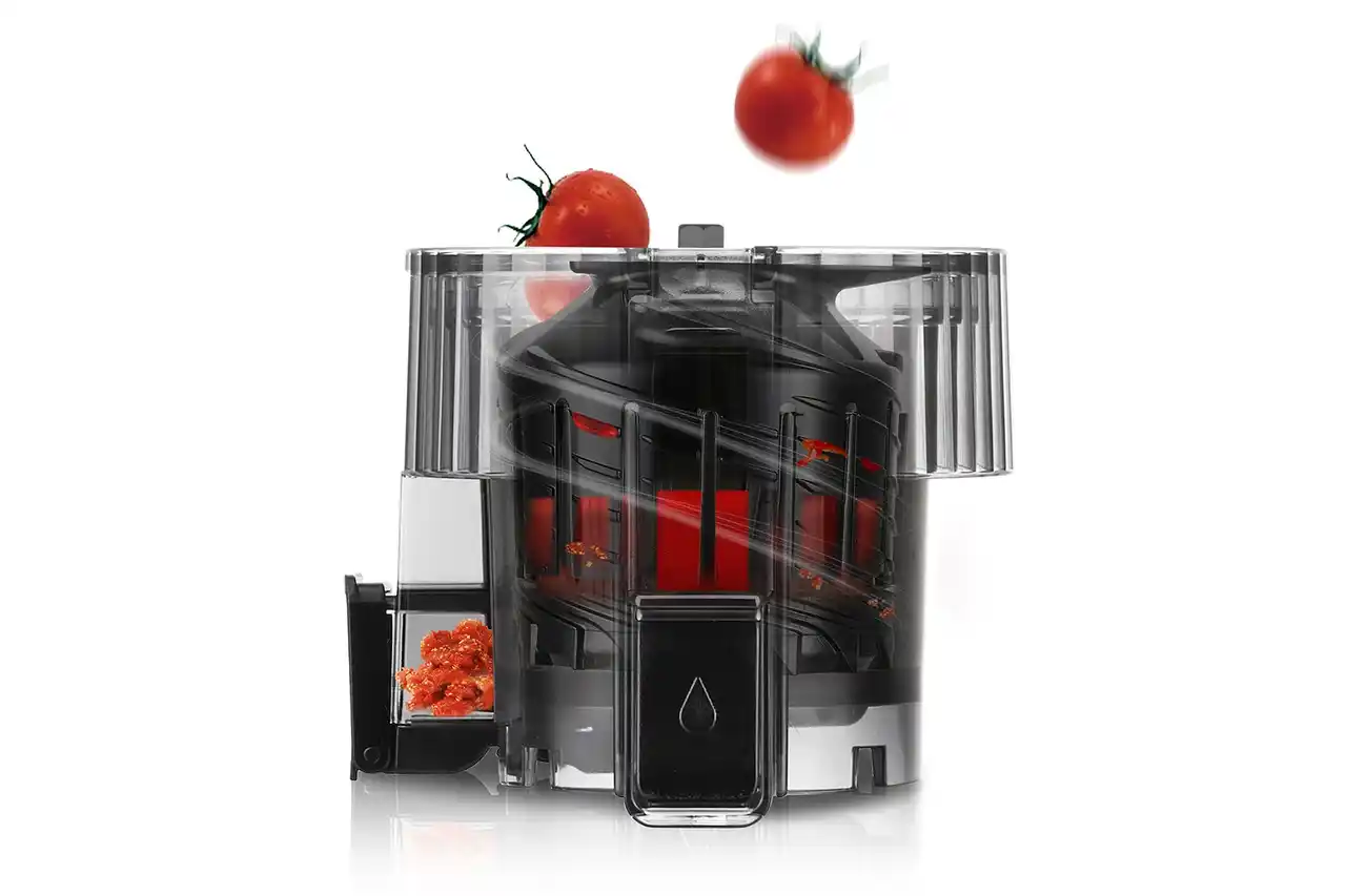 食材を細かくカットせずに、まるごと一気に入れられる「メガホッパー」により、様々な色々な野菜や果物の栄養素を摂り入れたコールドプレスジュースが短時間で搾れるようになりました。 |