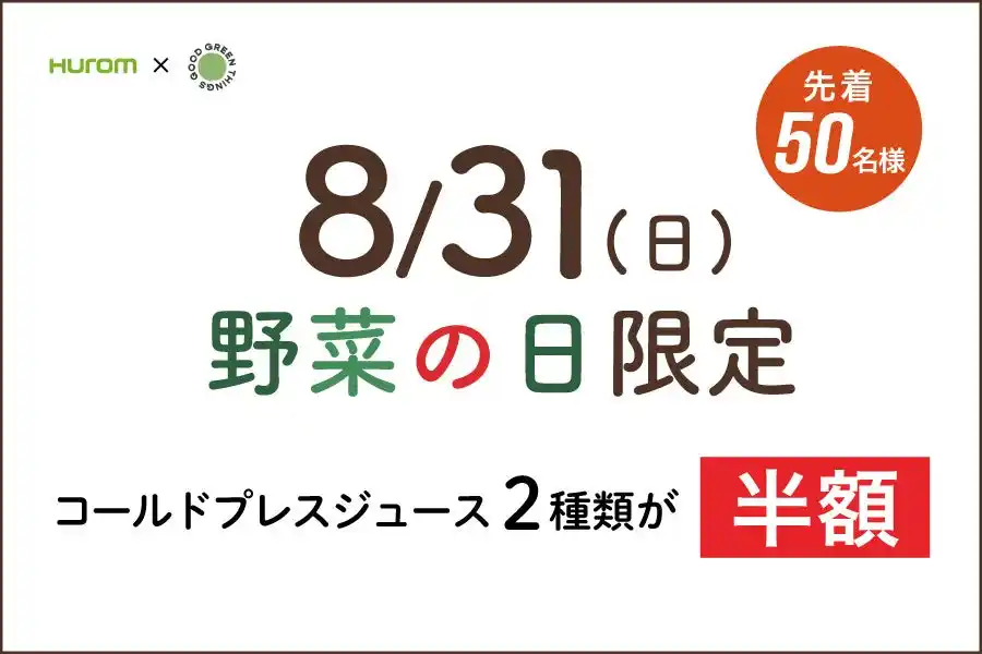オープン記念!ジュース半額キャンペーンを「8/31=やさいの日」に開催
