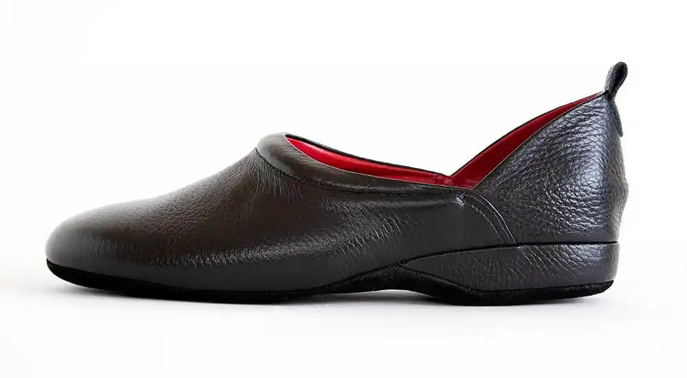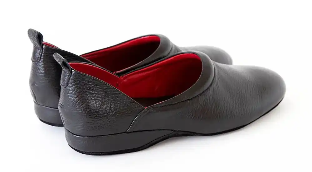 | 「踵まで包む安定感と、本革の高級感。快適さを追求した室内シューズ」 |