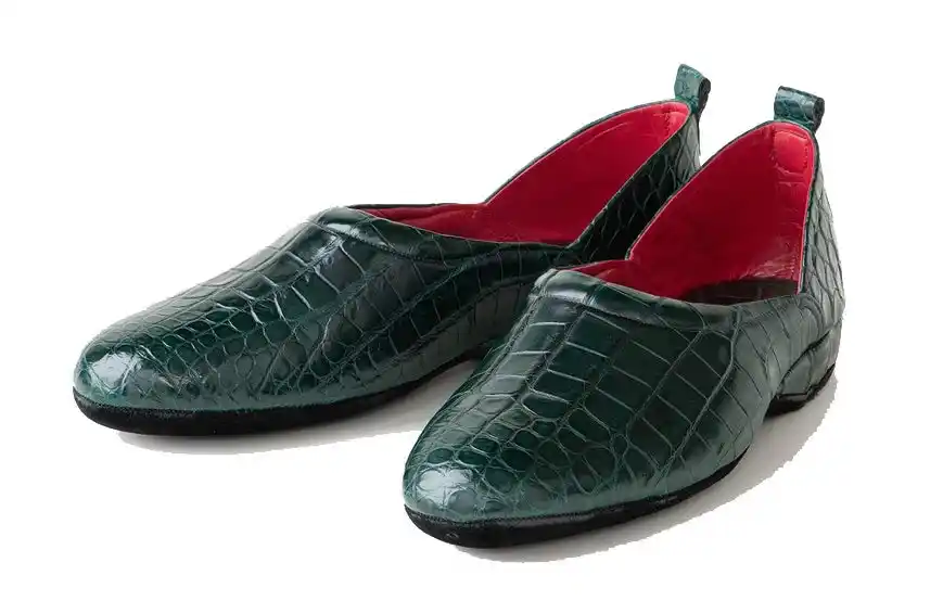| 特にスモールクロコの美しい斑(ふ)の並びは、視覚的な美しさだけでなく、足に吸い付くようなフィット感を生み出します。 | |||||||||