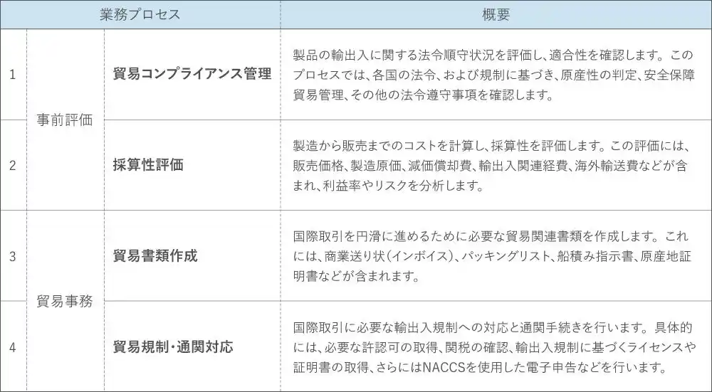 輸出入管理の主な業務の流れ |