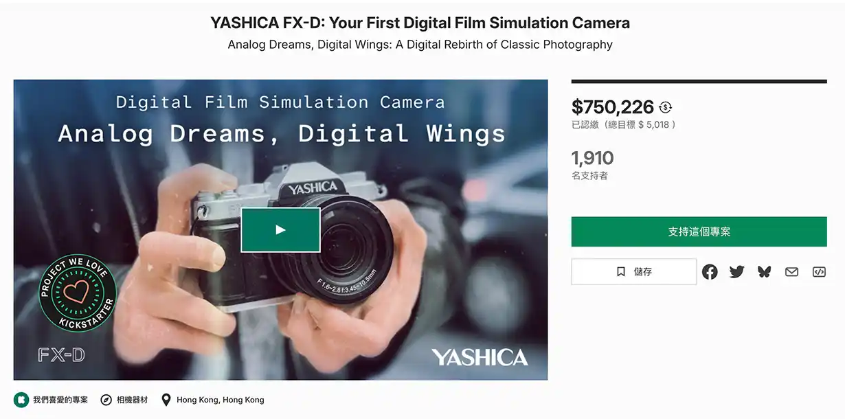 YASHICA製品は米国クラウドファンディングにて累計4億円以上を調達し、世界的な人気を誇ります。特にFX-Dシリーズは、2025年にKickstarterで約1億円を調達し、1,900人以上のサポーターから支持を得ました。今回の日本上陸は、グローバルファンに続く新たな挑戦となります。 |