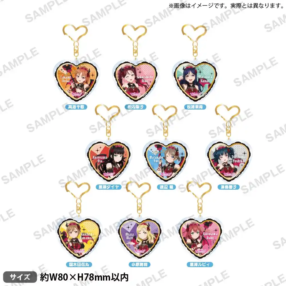 ラブライブ!サンシャイン!! ハート型アクリルキーホルダー こあくま(ハート)あいどるふぇあver. 価格:各1,100円 (税込) |