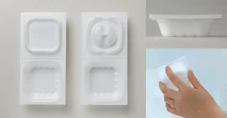 納豆のトレーは、持ち手がなくて持ちにくい、箸が引っかかってトレーを突き破る、混ぜるときに納豆が手に付くといった不満があります。また、近年、プラスチックを減らした環境負荷軽減パッケージが求められています。 |
