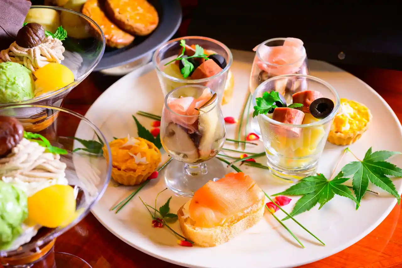 | ▍秋限定「小樽 Nostalgic Afternoon Tea ~シャインマスカットと栗の雅~」 | ||||||||||||||||