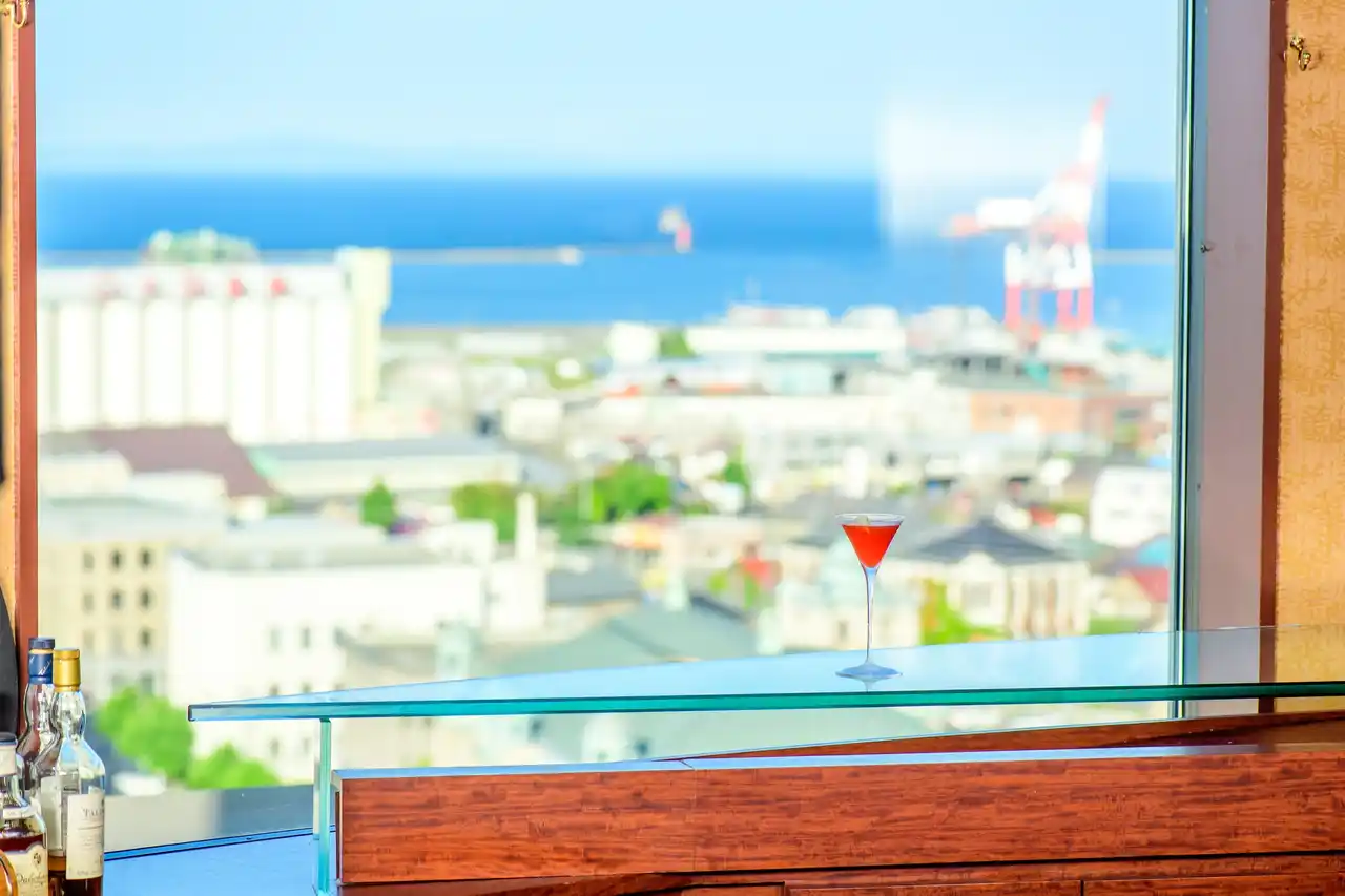 | 最上階から小樽を眺めるトップバー。小樽港や小樽日銀通りを一望でき、船の入港など、港町だからこそのダイナミックな風景をお楽しみください。 | ||||||||||||||||