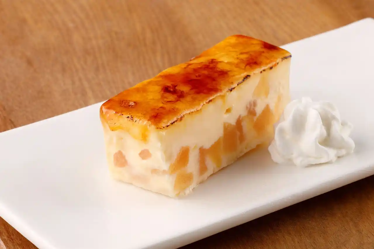 りんごを加えたカタラーナは、キャラメリゼにした表面でパリッとした食感もお楽しみいただけます。 |