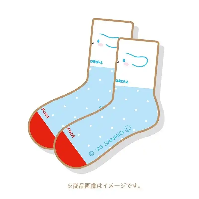 ベビーフット中にも使用後にも使える、シナモロール デザインのかわいい靴下付き。 |