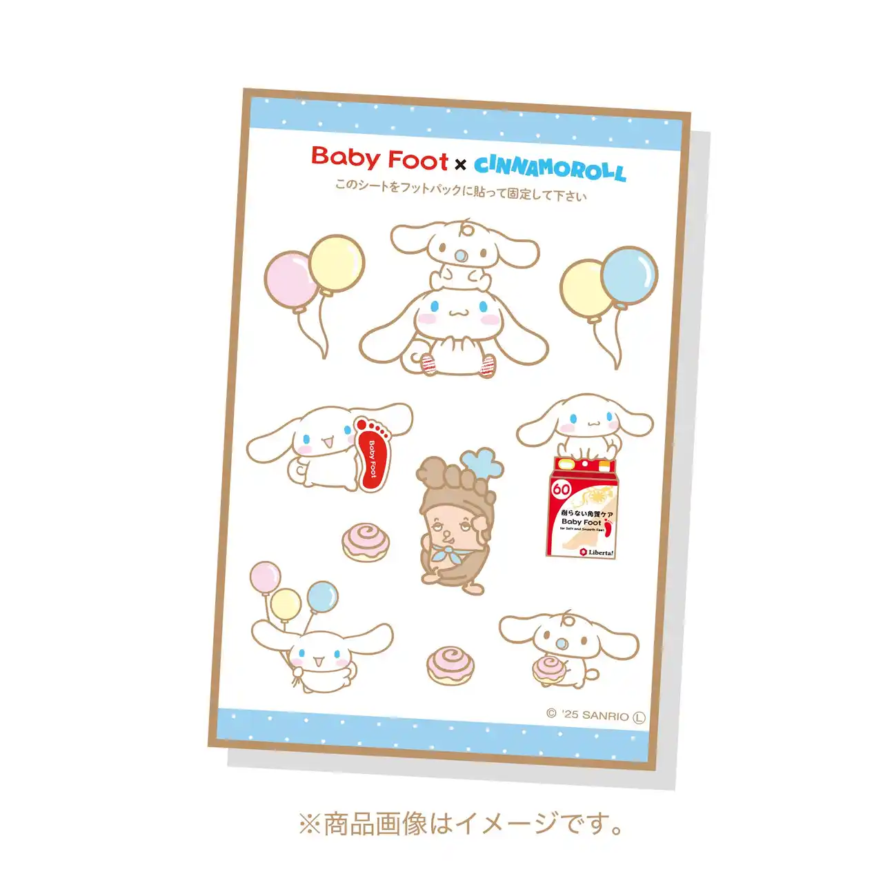 ベビーフット×シナモロールの限定コラボデザインシール付き。 |