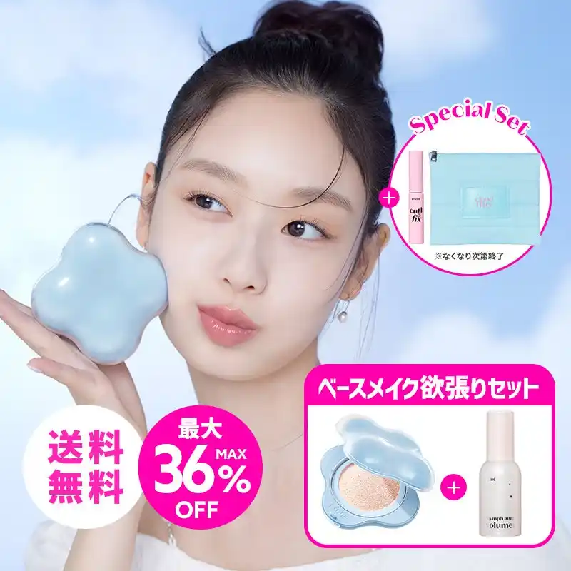 軽やかな仕上がり叶える『クラウドフィルタークッション』と、まるで韓国女優のようなツヤ肌に仕上がるとSNSでも話題の化粧下地『ニンフオーラボリューマ―』、さらにミニマスカラとオリジナルポーチまでついた盛りだくさんのアイテムが、Qoo10メガ割で最大38%OFF! |