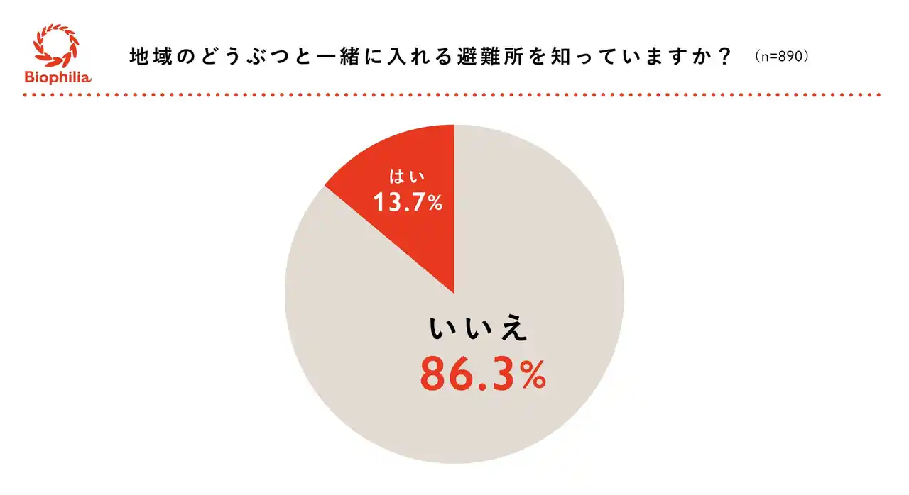 ・住んでいる地域でペットと一緒に入れる避難所を知っている飼い主は13.7%。 |