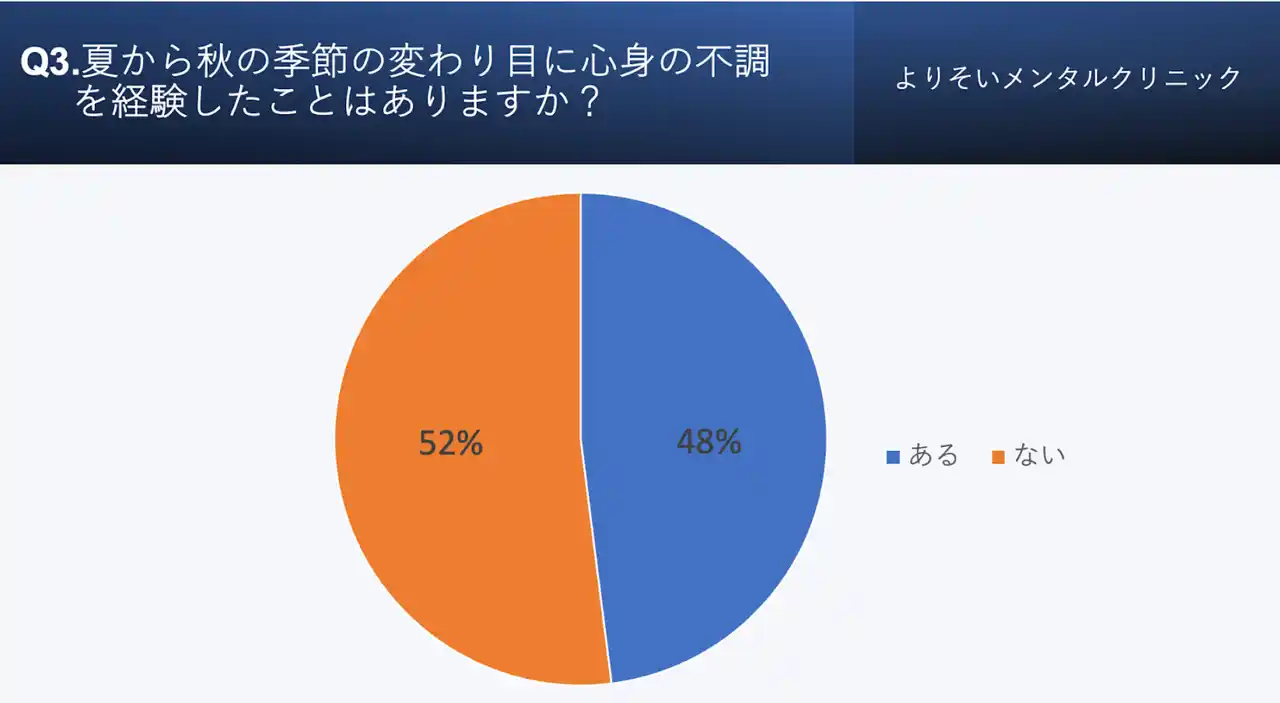 今回は、夏から秋への季節の変わり目の心身の不調に関して調査しました。 |