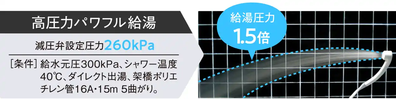 複数の蛇口やシャワーを同時に使っても湯量が安定。 スピーディなお湯はりで、毎日のバスタイムがもっと快適に。 |