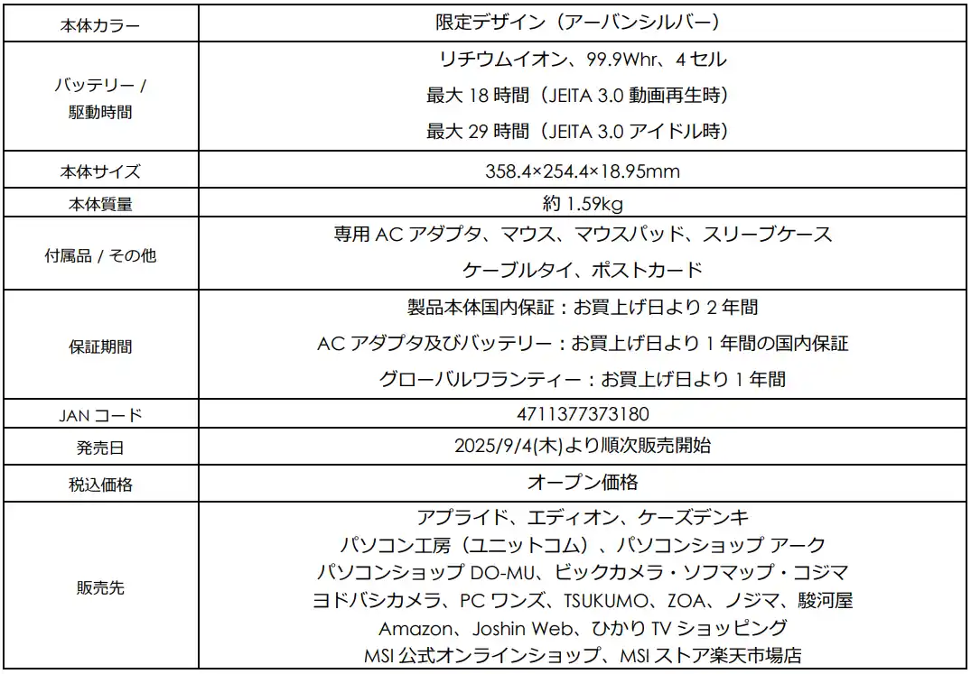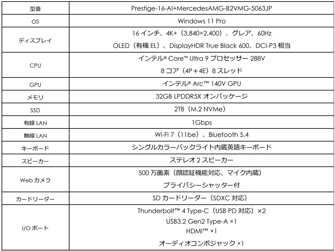 ・Prestige 16 AI+ Mercedes-AMG Motorsport B2VM シリーズ製品ページ:https://jp.msi.com/Business-Productivity/Prestige-16-AI-Plus-Mercedes-AMG-Motorsport-B2VMX
