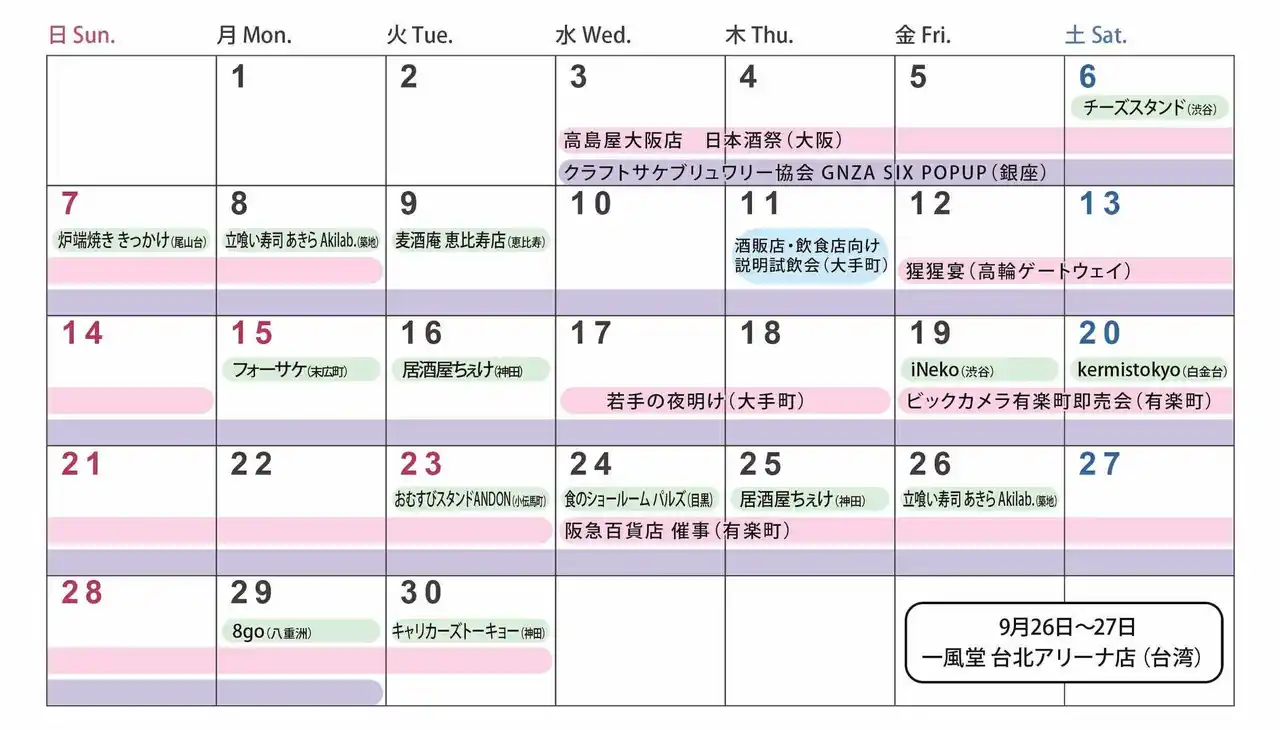 | 9月イベント・催事カレンダー | ||||||||||||||||||||||