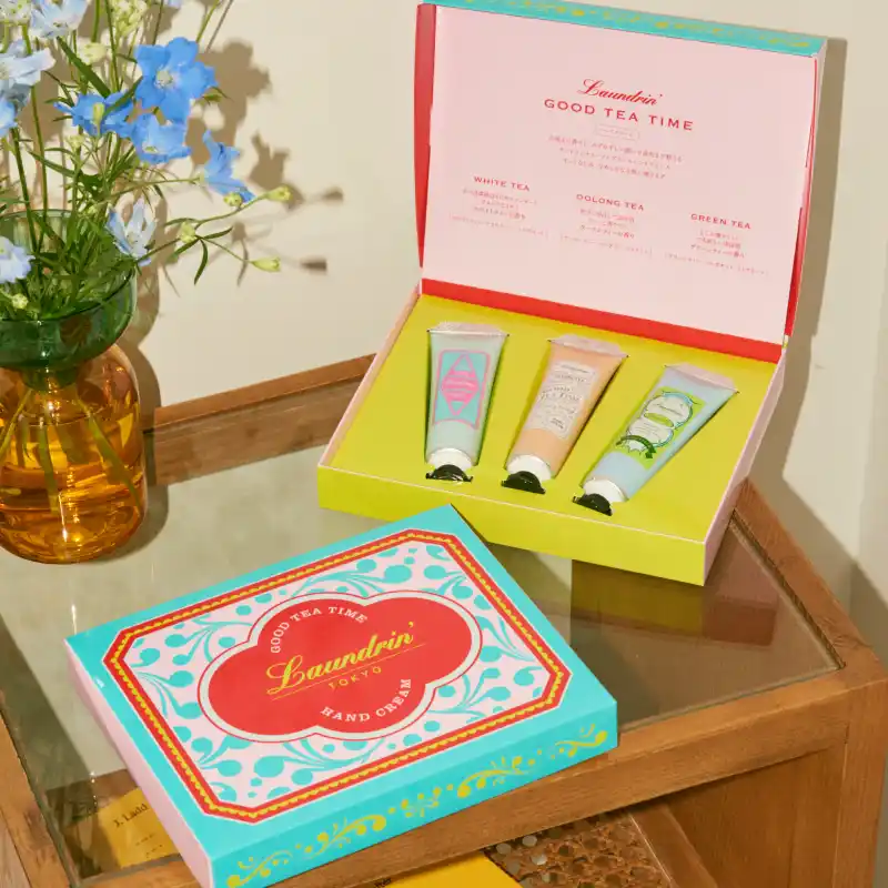 プレミアムホームケアブランド『ランドリン』のティーフレグランスシリーズ 『グッドティータイム(GOOD TEA TIME)』は、「ほっと一息つく時間」を香りで 提供したいという想いから2023 年に誕生しました。 今回は、ティーフレグランスの人気の香りからホリデーシーズンに向けて 「ハンドクリーム」のコフレセットが新たに登場。 さらに、昨年反響をいただいた「ミニキャンドル」のコフレセットも再販いたします。 |