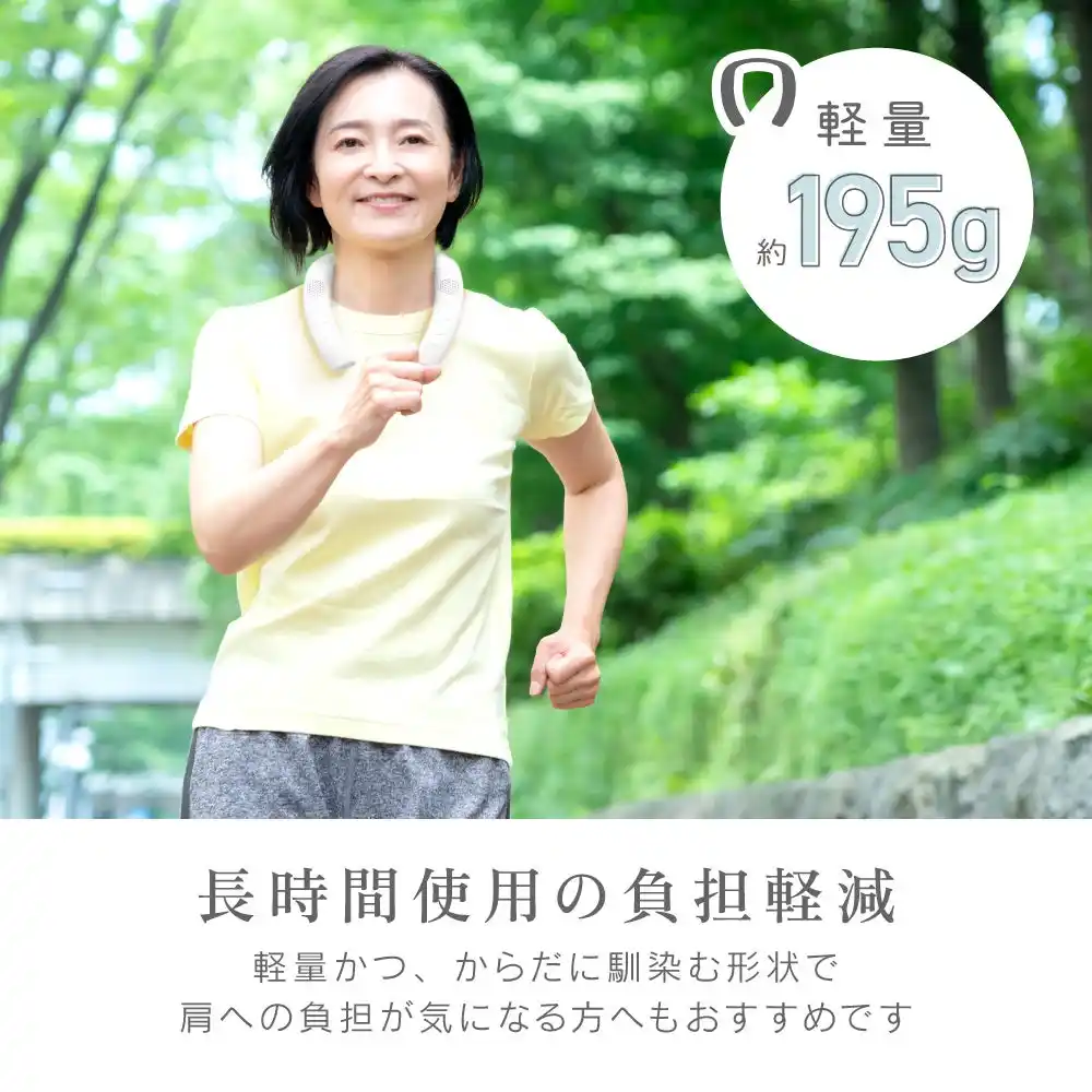 | 本体重量約195gと軽量設計で、⾸や肩への負担が気になる方にもおすすめです。 | ||||||||||||||