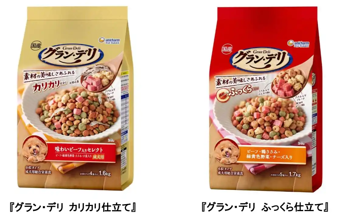 『グラン・デリ カリカリ仕立て』『グラン・デリ ふっくら仕立て』が素材の美味しさを伝える新パッケージにリニューアルします。 |