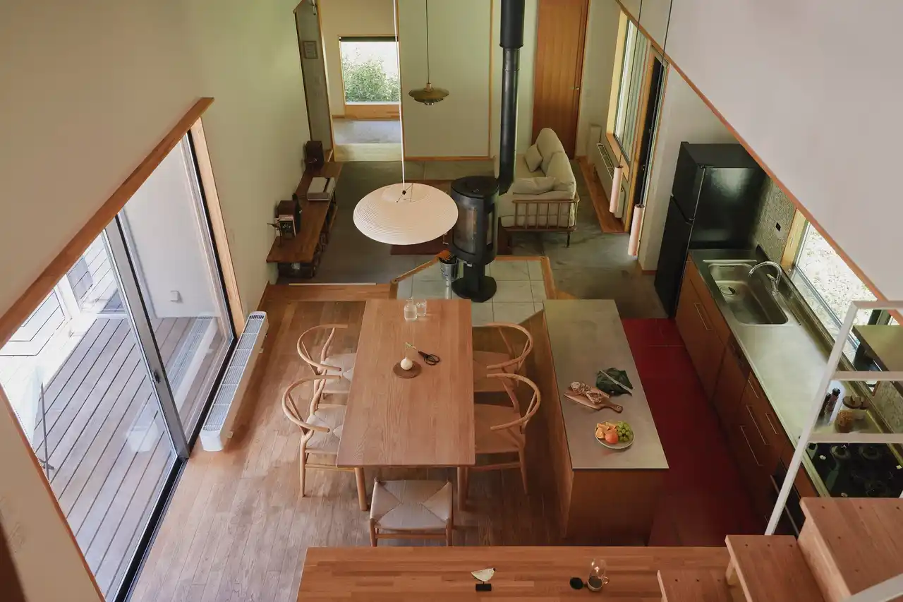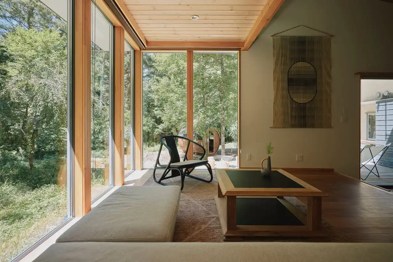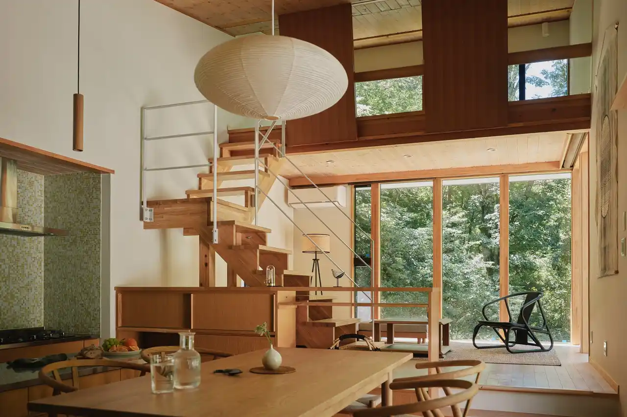 本プロジェクトは、SANUの自社建築チーム〈SANU ARCHITECTS〉が初めて設計監理を手がけたリノベーション拠点。室内には北欧家具や日本の職人による照明、地元作家のアートを配し、窓辺からやわらかな光が差し込みます。さらに、サウナブランド〈totonoü〉による北欧産バレルサウナやリビングシアターも完備しました。 |