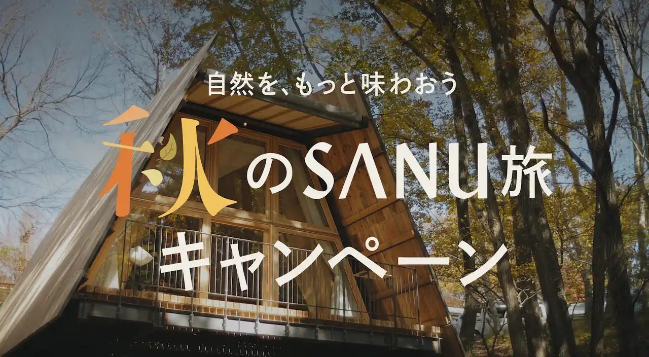 SANUでは、会員以外の方も【ゲスト宿泊】が可能です。現在実施中の秋のSANU旅キャンペーンでは、1泊から自然とともにある暮らしを気軽に体験いただけます。 |