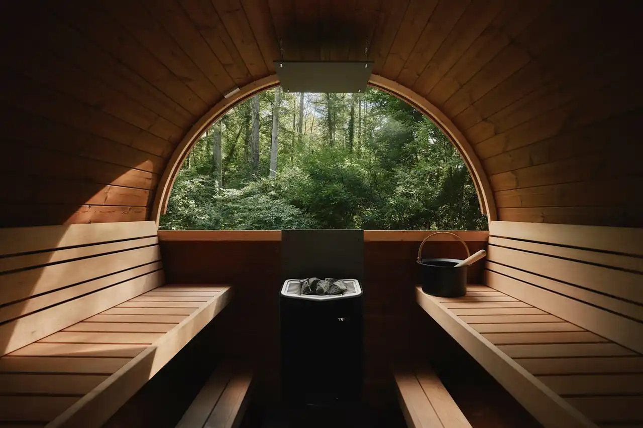 タイプは最大6名まで滞在可能なLarge(全3棟)と4名定員のMedium(全5棟)。Largeにはプライベートサウナを完備し、一部にはDog Friendlyタイプも用意。愛犬と共にゆったり過ごせる環境が整っています。 |