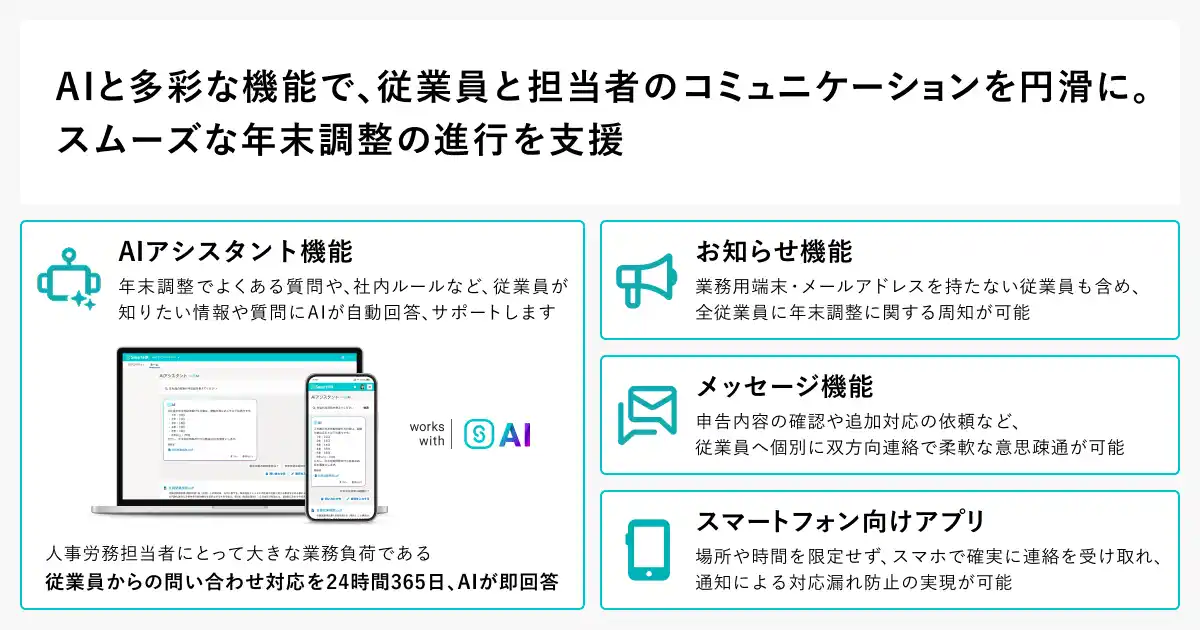 2. 「AIアシスタント」機能で従業員の「問い合わせ対応」を自動化し、スムーズな年末調整の進行を支援 |