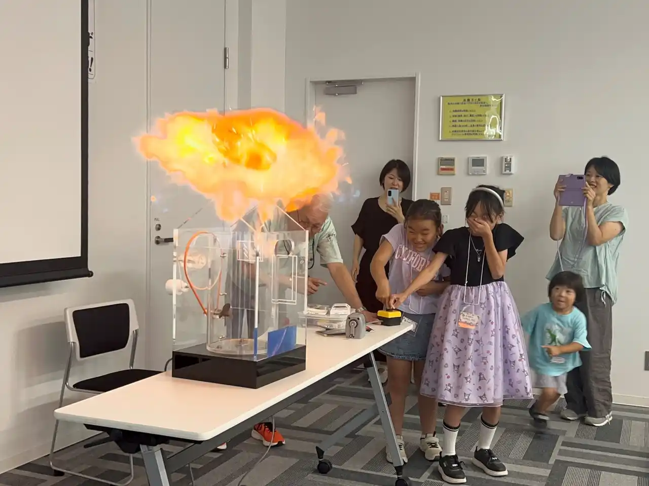 当社では「親の働く職場を知り、ガスや火災の知識やそれらの安全を支える当社製品を身近に感じてもらう」ことを目的に、従業員の子どもを対象とした会社見学イベントを開催しています。夏休み期間に合わせて2025年度は7月30日と8月3日に開催しました。火災実験の見学やガスについて体験学習を通じて、子どもたちが“安全を守る技術”に触れる機会を提供しています。
